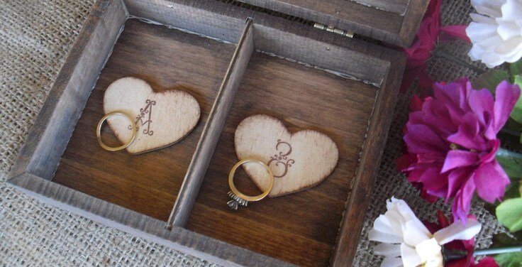 День бракосочетания самое важное событие в жизни каждого человека. Одним из важнейших моментов торжества является обмен кольцами. Это время молодожёны хотят сделать особенным и незабываемым, запечатлеть на фото. Все чаще ищется альтернатива подушечке для колец. Ее можно заменить многими другими аксессуарами разной формы, выполненных из различного материала. Хорошо продуманная и правильно реализованная идея станет украшением празднества. Атрибуты бывают круглые, квадратные, в виде сердечка. Окрас подбирают под стиль свадьбы, декорируют лентами, флористикой, бусинками, кружевом. Альтернатива подушечке для колец — варианты замещения Ракушка Используется настоящая морская ракушка. Символически, если она привезенная с совместного отдыха влюбленных. Покрывают золотой или серебряной краской. Украшают жемчугом, бантами, морскими звездами. Раковина может состоять из одной части или закрываться. Из мелких моллюсков также собирают два лебедя. Обозначает достаток и благополучие, приносит в семью