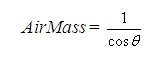 Когда Солнце находится под определенным углом и к зениту (наблюдатель при этом на уровне моря), «воздушная масса» определяется как соотношение длины пути лучей Солнца при этой широте к длине пути, который Солнце проходит, находясь в зените. Согласно простой тригонометрии (смотри рисунок 1), это соотношение равно: