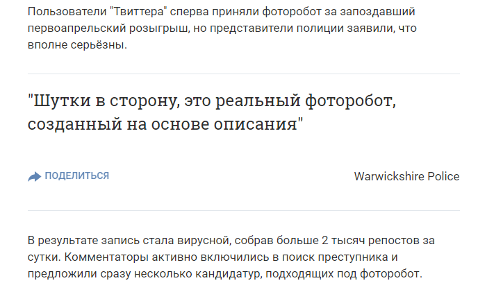Полиция Уорикшира опубликовала необычный фоторобот преступника, который ограбил квартатиру