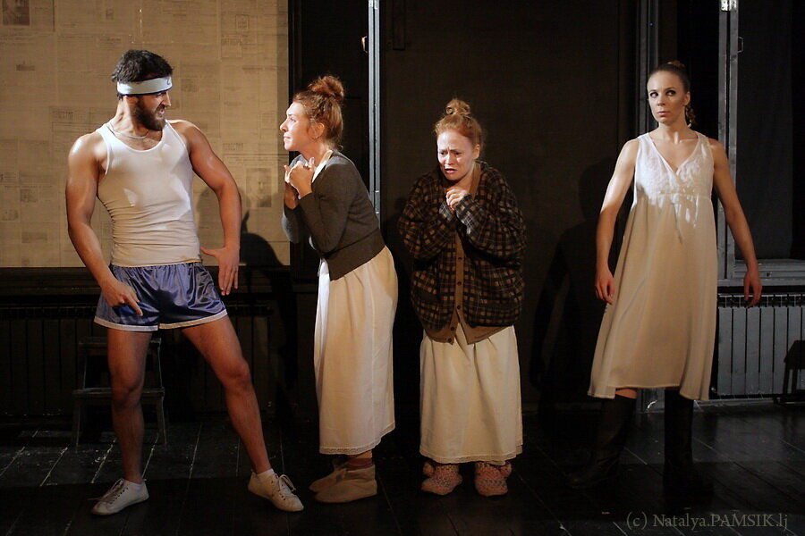 Так вот никаких примет времени в спектакле не будет. Три главных героя – Подсекальников, жена и тёща, замечательно начнут спектакль и блестяще отыграют первые сцены, более чем органично предоставив зрителям возможность насладиться историческим временем, а затем будут разбавлены фриками из сегодняшних реалий.