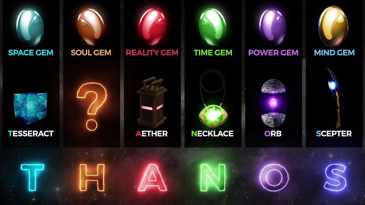 Как только в киновселенной Marvel появился первый камень бесконечности, фанаты начали строить свои теории. Чем больше выходило фильмов, тем более они убеждались, что на верном пути. Уже доказано, что из первых букв местонахождения всех камней складывается имя ТАНОС, и уже, практически, все камни найдены, кроме одного. И так: T — Тессеракт (Tesseract). Синий куб, за которым охотился Красный череп в фильме "Первый Мститель", а так же, с помощью которого Локи прибыл на Землю и помог армии читаури пройти сквозь портал в "Мстители".