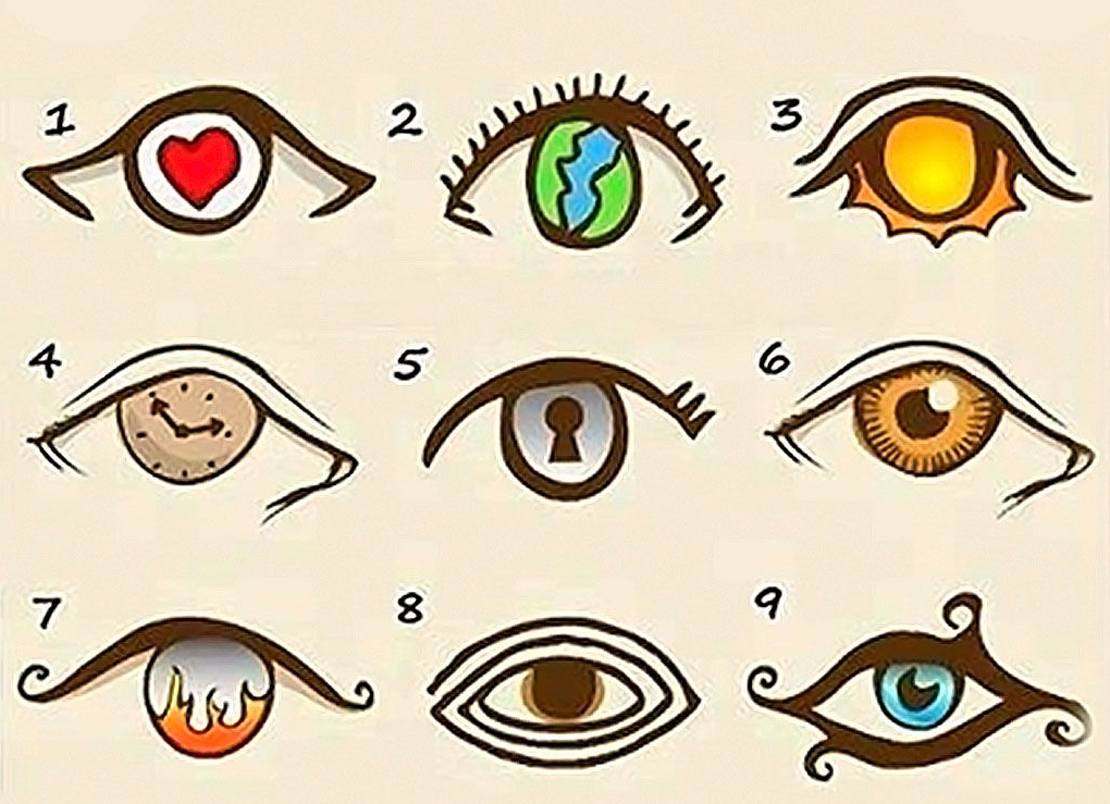 Посмотрите на эти девять разных глаз и без раздумий выберите тот,который вам понравился больше всего. Главное - не думать,а выбрать тот глаз, который эстетически вам импонирует больше всего. №1 Открытость Вы из числа тех людей, которым интересны новые знакомство и дальнейшее общение. Вы быстро открываетесь и часто нередко оступаетесь, это становиться причиной вашей закрытости. Вам нужно избегать проявлений своей слабости и страхов. Вы постоянно готовы прийти на помощь и решать трудности без помощи других. №2 Добросовестность Вам необходимо производить хорошее впечатление на ваше окружение. Вы все время пытаетесь делать все правильно, вы всегда цените людей по их поступкам. Вы не показываете никому ваше плохое настроение или самочувствие. Вы не любите нагружать людей еще и своими проблемами, когда вокруг столько бед. Для вас важно помогать людям. №3 Несчастный человек Прошлое отложило на вас глубочайший шрам в вашей душе и все еще имеет огромное влияние на ваше настоящее. Вам