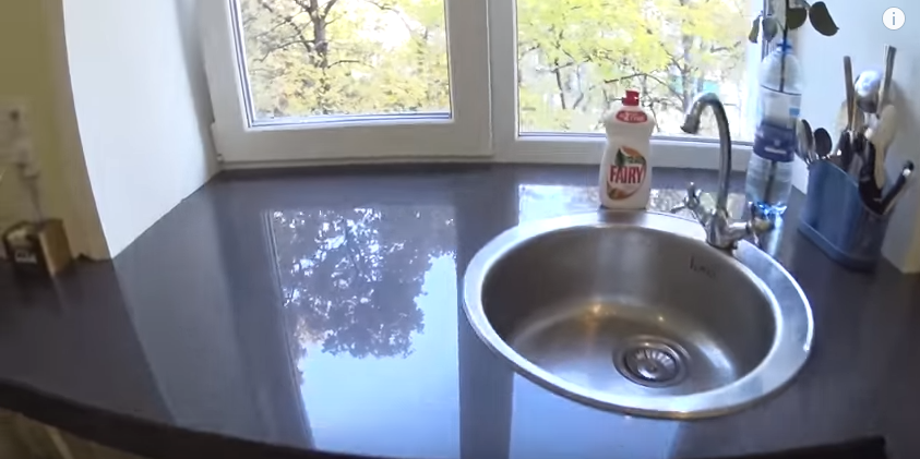 Если у вас кухня небольших размеров, или вы просто хотите перепланировать кухонную мебель, сделать кухню просторней, то приходиться учитывать каждый сантиметр. При такой перепланировке загвоздка состоит в солешнице. Сделать столешницу своими руками нужной конфигурации вам поможет видео человека, который все это сделал первый раз. Из материалов потребуется влагостойкий гипсокартон, бруски, плиточный клей, керамогранит. Из инструментов болгарка с алмазным диском, плиткорез , шпатель, ножовка, нож, шуруповерт.Дверцы для шкафов можно заказать или купить.