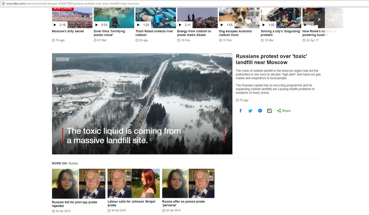 На сайте главной страницы BBC расположена новость с заголовком "Московский грязный секрет" (Moscow's dirty secret) и с заголовком "Русские протестуют против токсичной свалки в Подмосковье на странице самой новости. Тут приведен краткий видеообзор проблемы в Волоколамске. Съемка в Районе Волоколамска и митингующих. Также приведена информация о выдаче масок и противогазов жителям и об отсутствии программы переработки мусора у российского правительства.