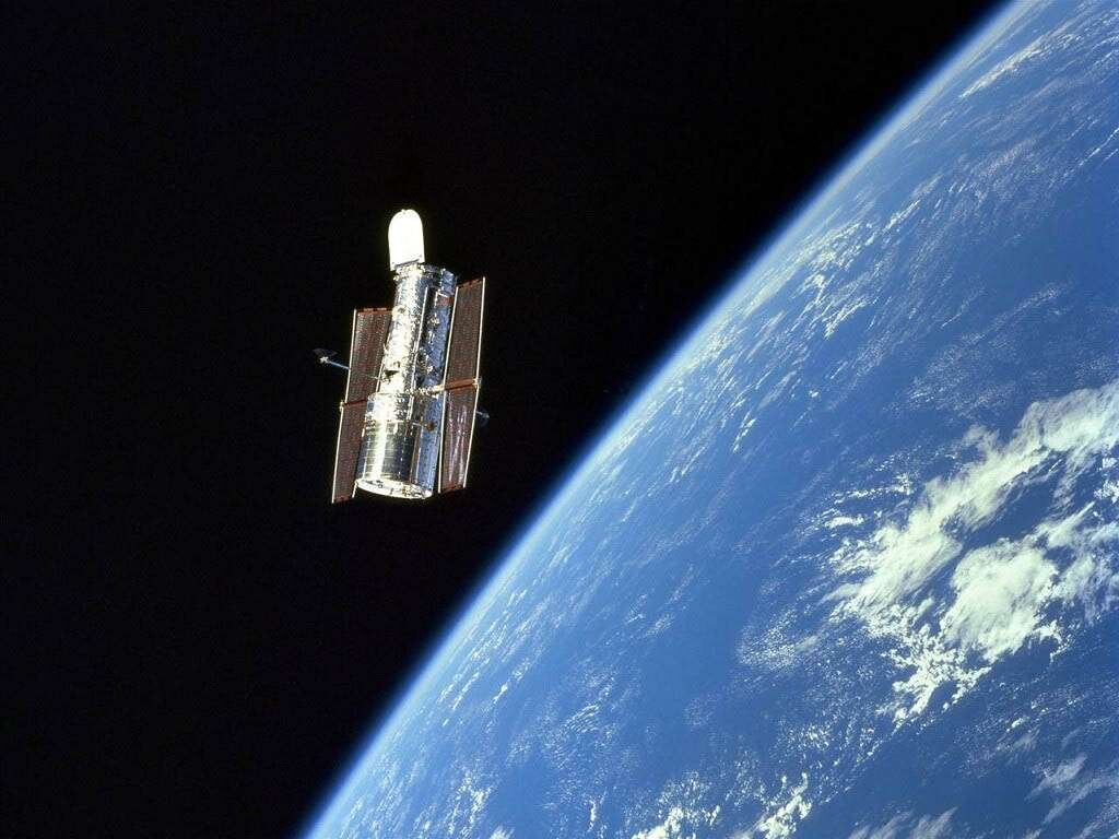 Хаббл на фоне Земли Телескоп Хаббл носит название в честь Эдвина Хаббла и является работающей в абсолютно автоматическом режиме обсерваторией, местом нахождения которой является орбита планеты Земля. Общие сведения Шаттл Дискавери 24 апреля 1990 года вывел космический телескоп Хаббл на заданную орбиту. Нахождение на орбите дает отличную возможность фиксировать электромагнитное излучение в инфракрасном диапазоне Земли. Вследствие отсутствия атмосферы, способности Хаббла увеличиваются в разы по сравнению с такими же аппаратами, находящимися на Земле. Трехмерная модель телескопа Технические данные Общий вид на орбите Космический телескоп Хаббл, представляет собой сооружение цилиндрической формы протяжённостью 13,3 м, окружность которого составляет 4,3 м. Масса телескопа до оснащения спец. оборудованием составляла 11 000 кг, но после установки всех необходимых для исследования приборов общая его масса достигла 12 500 кг. Питание всего установленного в обсерватории оборудования осуществляе