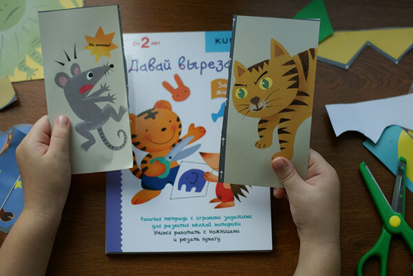 Умение вырезать — важный навык, который предстоит освоить малышу. А всё потому, что работа с ножницами развивает мелкую моторику, мышление и координацию, учит концентрироваться, быть внимательным и усидчивым. Рассказываем, как помочь ребёнку научиться вырезать и какие картинки выбрать для первых шагов. KUMON-вырезание Ножницы — сложный инструмент. Малыши не с первого раза понимают, как их правильно держать, каким образом вести по картинке и как оставаться в пределах линии. Первые опыты с инструментом часто неудачные. Но учить ребёнка вырезать можно уже с двух лет. Ключ ко всему — правильная методика. Такая как японская методика KUMON: она основана на трёх принципах — самостоятельность, эдьютейнмент и регулярность. Эдьютейнмент — обучение через игру — особенно привлекает детей. Ведь ребёнок готов регулярно заниматься лишь тем, что ему нравится. Поэтому в тетрадях «KUMON. Давай вырезать!»есть пазлы, лабиринты и «вкусные» картинки и сюжеты с забавными животными. Выбираем хорошие ножниц
