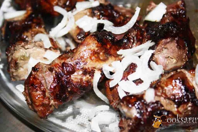 Сегодня мы приготовим шашлык из говяжьей печени. Готовит его можно как просто, так и в жировой сетке. В сетке он получается сытней, вкусней и красивей.)))) Для наших шашлычков нам понадобится : Говяжья печень Соль Перец черный молотый Молотая паприка Кинза свежая ( если шашлык делается в сетке ) Жировая сетка Курдючный жир или сало ( для шашлыка без жировой сетки ) Итак приступаем. Самое главное это попробовать удалить с нашей печени ))) пленку, которая ее покрывает. Зачем спросите вы! Пленка при большой температуре будет сжиматься и будет деформировать наши кусочки. А это будет выдавливать сок. Так что если можете, то обязательно удалите пленку. Удаляется она более – менее легко. Под нее с небольшим усилием можно просунуть палец. Просовываем, тянем, отрываем. Нарезаем, по возможности, на одинаковые кусочки. Они должны быть достаточно большими, чтобы их можно было нанизать на шампура. Протоки, которые встречаются в печени, тоже удаляем. Теперь рассмотрим 2 рецепта приготовления. 1.