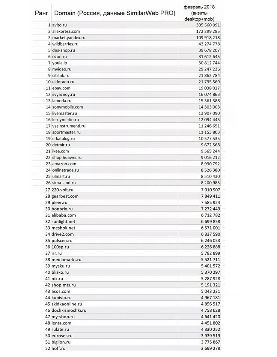 Трафик крупнейших интернет-ритейлеров за февраль 2018 года