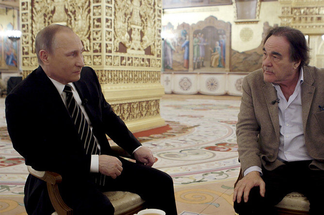 Заметив это, глава государства пошутил "Типичный Американский подарок" Оливер Стоун и Владимир Путин находились на встрече ради интервью для документального фильма о президенте России, который снимает режисер из Америки. В одной из пауз между интервью собеседники посмотрели фрагмент из картины Кубрика " Доктор Стрейнджлав, или Как я перестал бояться и полюбил бомбу ", после чего Стоун посоветовал Путину посмотреть фильм целиком и вручил ему коробку от диска, забыв сам диск достать из DVD-проигрывателя. Сатирический фильм Стэнли Кубрика "Доктор Стрейнджлав, или Как я перестал бояться и полюбил бомбу" рассказывает о ядерной атаке Соединённых Штатов на Советский Союз и её последствиях. «Интервью с Путиным», «Путин» (The Putin Interviews) — четырёхсерийный документальный фильм 2017 года режиссёра Оливера Стоуна о президенте Российской Федерации Владимире Путине. Слоган фильма — «Know your enemy» («Знай своего врага»).