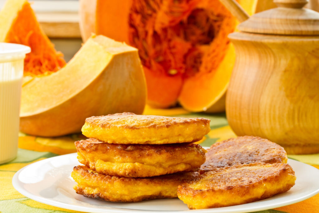 Вкусные, золотистые оладушки. Ингредиенты: Тыква 1 кг Мука пшеничная 1 стакан Соль и сахар по вкусу Масло растительное Приготовление: Помыть и очистить тыкву. Затем натереть на мелкой тёрке, добавить соль и сахар по вкусу, перемешать. Далее добавить просеянную муку и перемешать до однородного состояния. Разогреть масло на сковороде. Сформировать оладьи и равномерно обжарить с обеих сторон. Блюдо прекрасно сочетается с мёдом или сметаной. Приятного аппетита.