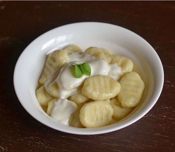Чем накормить маленького непоседу? Ловите рецепт картофельные ньокки Ингредиенты: картофель-800 гр яйцо-1 шт мука -300 гр сыр твердый-30 гр сметана по вкусу соль и приправа по вкусу (чеснок сушеный, укроп, петрушка) Картофель почистить и отварить, размять вилкой в пюре , добавить твердый сыр,яйцо, соль, муку и замесить тесто. Сформировать ньокки и варить 3 минуты, пока не всплывут. Подавать со сметаной. Источник:appetitnoe detstvo