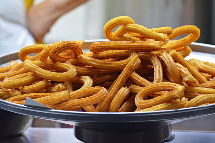 Этот популярный испанский десерт под название чуррос покорит вас своей простотой и божественным вкусом! Нежные, тающие во рту пончики. Не зря эта сладость распространилась по многим странам. Готовится проще простого за 20 минут! Чуррос можно как жарить во фритюре, так и запекать в духовке (более легкий и полезный вариант). Предлагаю классический испанский рецепт! Ингредиенты: Рецепт: 1. Смешать просеянную муку с корицей, солью и разрыхлителем теста. 2. Влить кипяток, и хорошо размешать до получения однородного теста. Лучше это делать миксером. 3. Оставить тесто на несколько минут. 4. Кондитерский мешок с насадкой или пакет и отрезанным уголком наполнить тестом. 5. Разогреть в глубоком сотейнике масло. Выдавить из мешка тесто полосками 10 см или лучше полукольцами, спиральками. Сделать 3-4 выдавливания за раз, чтобы чуррос при жарке не мешали друг другу. 6. Обжарить до золотистости и сразу же выложить на салфетки, чтобы удалить лишнее масло. 7. Посыпать чуррос обильно сахарной пудрой.