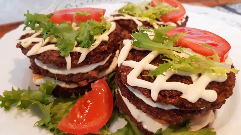 Вкусные, нежные и очень сочные печеночные мини-тортики станут настоящим украшением любого стола: и праздничного, и повседневного. Приготовить закуску очень просто, легко и быстро, никаких особых навыков не потребуется. Овощной крем делает оладьи из печени сочными, мягкими и нежными: каждый кусочек такого лакомства буквально тает во рту. Рецепт универсальный: и соус, и начинку можно заменить по своему вкусу. Надеюсь, что блюдо вам понравится и надолго станет самым любимым. Необходимые ингредиенты: Печеночные мини-тортики: пошаговый процесс приготовления Печеночные мини-тортики можно и не украшать, просто сделать прослойку из овощного крема. Сделать такое лакомство совсем несложно, зато сколько радости вы доставите своим родным и друзьям. Понравился рецепт? Милости просим на наш сайт «Девчата» за новыми идеями. Приятного аппетита и праздничного вам настроения.
