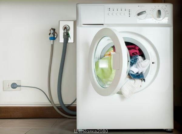 Когда бытовой прибор находится в ванной комнате, то при приеме душа машину надо отключать от сети, во избежание удара током.