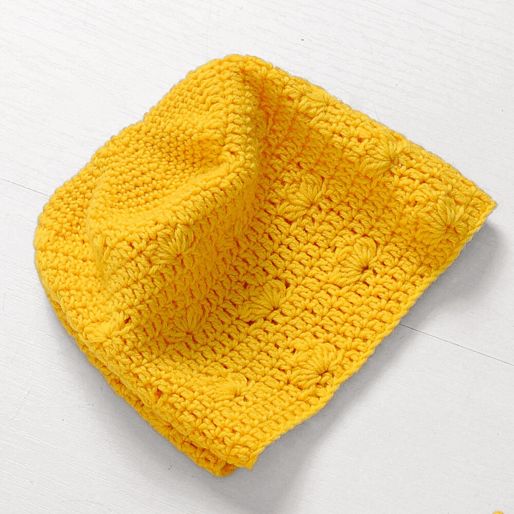 ВАМ ПОТРЕБУЕТСЯ Пряжа (100% овечьей шерсти; 150 м/50 г) — 100 г золотисто-желтой; крючок №3,5.