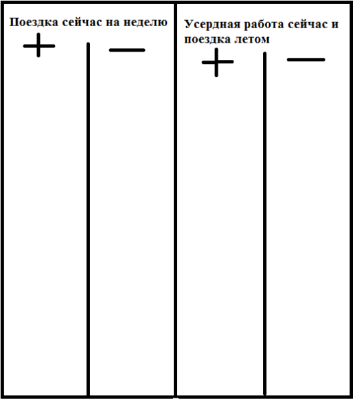 Все мы сталкиваемся когда нибудь с выбором, он может быть пустяковым "какое платье выбрать?" или же серьезным "на какую из двух работ устроиться?" И каждый раз, делая выбор, мы боимся ошибиться. Как научить делать правильный выбор? Это очень легко! Я научу вас как делать правильный выбор исходя из рационального! Но знайте, что бывает и такое, когда человек научился слышать сою душу, когда он идет на пути к саморазвитию, выбор он делает исходя из внутреннего голоса. Но, к сожалению, люди часто путают внутренний голос с ЭГО. Поэтому даю вам практику правильного выбора исходя из рационального, о духовном поговорим в следующей статье! Для начала, как я уже учила, успокойтесь. Сядьте и подышите, прислушайтесь к своему дыханию, полностью осознайте себя, что вы есть здесь и сейчас, это поможет очистить мысли. Затем возьмите лист бумаги и ручку, разделите этот лист пополам по вертикали, исходя из вариантов вашего выбора: "работа менеджером в магазине или работа консультантом в крупной компани