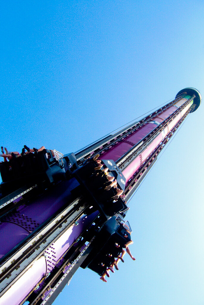 Зона свободного падения (Огайо, Парамаунт). Платформа аттракциона поднимается на 100 метровую высоту, что равняется высоте 26-ти этожного дома. После осмотра окружающих красот, любители острых ощущений стремительно падают вниз со скоростью 100 км,час.