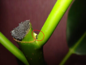 - если почка замерла в росте, горшок с фикусом можно наклонить таким образом, чтобы росток пошел вверх;