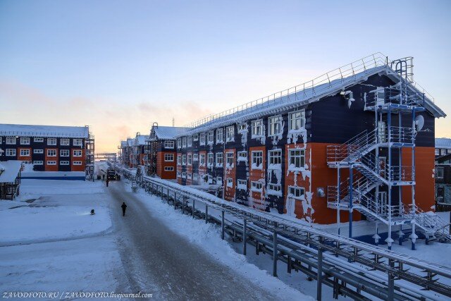 Большинство здешних зданий - это быстровозводимые блочные постройки, которые были изготовлены в Вологде. При этом также был разработан уникальный утеплитель, благодаря чему все здания свободно могут выдерживать температуру до минус 65 градусов. Поэтому и зима тут совсем не страшна.