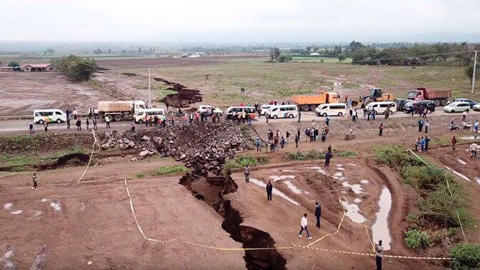 🌍В Африке образовалась трещина, которая может разломить континент Произойдёт это не скоро. По мнению ученых, многокилометровая трещина разделит материк через 50млн лет, но уже сейчас ломает дороги.