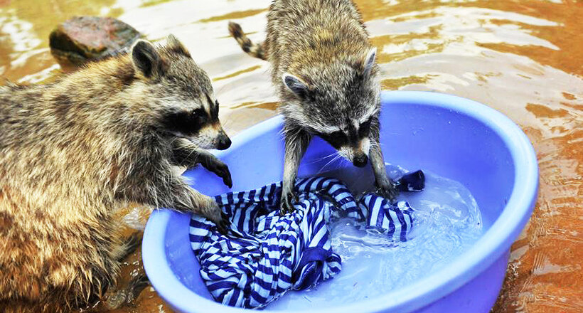 Самое популярное животное, которое люди хотят завести у себя дома - енот-полоскун. Полоскуном его назвали совсем не за его полоски, название "полоскун" закрепилось за животным благодаря его манере полоскать свою еду в воде перед поеданием. Жизнь енотов крепко связана с водоемами, обитают они в большинстве случаев там, где есть река или озеро, также они предпочитают селиться в старых деревьях. Начнём с того, что это хищный ночной зверь, который выбирается на охоту с наступлением сумерек, в поисках пищи ему помогает хорошее осязание и зрение. Засовывая лапки в воду, енот начинает рыться в водорослях, в тине, переворачивает и шарит камушки, со стороны его манипуляции похожи на стирку белья, но так он ищет себе пропитание, пытаясь найти разнообразных земноводных, они предпочитают питаться лягушками, раками или небольшими рыбками, но когда же созревают различные овощи или фрукты, они питаются яблоками, кукурузой, ведь эта еда является более доступной, чем животная. Таким образом, еноты п