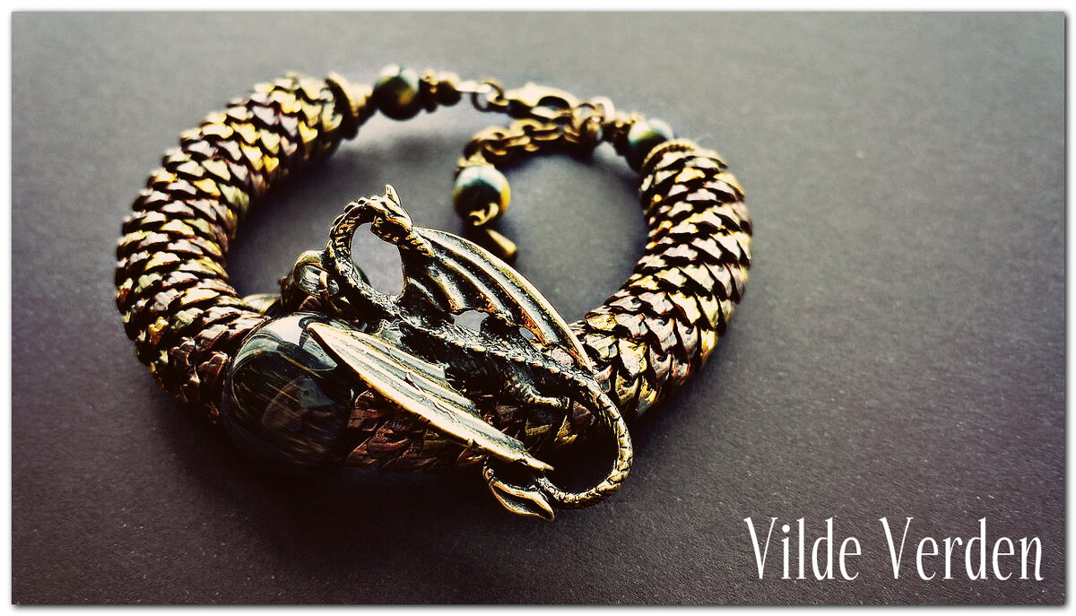 В этой работе я использовала разные металлы, в том числе - бронзовую фигурку дракона ручной работы. Он был создан мастером Анной (с большой любовью к своему делу) и кропотливо проработан вплоть до самых мелких деталей.