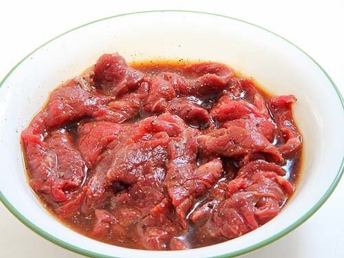 Сегодня я вам расскажу рецепт блюда с азиатским вкусом. Это будет говядина в соусе "Тереяки" мясо получается сочным, нежным просто тает во рту. Хороший гарнир будет рис или рисовая лапша. Ингредиенты: 650 г. мякоти говядины (молодой) 2 шт. луковицы 1 ч.л. кунжута зелень подсолнечное масло для жарки Соус 3,5 ст.л. соевого соуса 2 ст.л. подсолнечное масла 2ст.л. лимонного сока 1,5 ст.л. сахара 2 зубчика чеснока соус чили по вкусу Способ приготовления: Хорошо промываем мясо и нарезаем на кусочки поперек волокон. Наше мясо отбиваем с обеих сторон. Теперь приступаем к приготовлению маринада. Берем соевый соус смешиваем с лимоном, растительным маслом. Добавляем сахар и тертый чеснок. Наш маринад получается сладковатым. Помещаем наше мясо в маринад и даем ему постоять, чтобы промариноваться 1-1,5 часа.