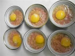 ингредиенты: (для 4 человека) фарш 400 г (без жира) лук 1 шт. яйцо 4 шт. соль по вкусу специи по вкусу Сначала мы удалим лук в тёрке. Затем смешать его с фаршем, солью и специями. Затем поместите его в посуду(фарфор или другое). Положите на него одно яйцо. Затем поместите посуду на мантоварке. Приготовлено в течение 30 минут. Попробуйте. Это легко и быстро.