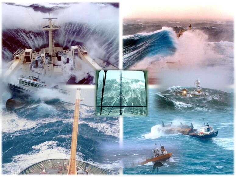Бак уходит под воду, возникает сильный дифферент (наклон) на нос, по инерции зарывается еще глубже в воду, а тем временем гребень волны, что есть силы обрушивается на лобовую надстройку.