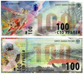 100 рублей 2018 года посвященная Чемпионату мира по футболу 2018 год