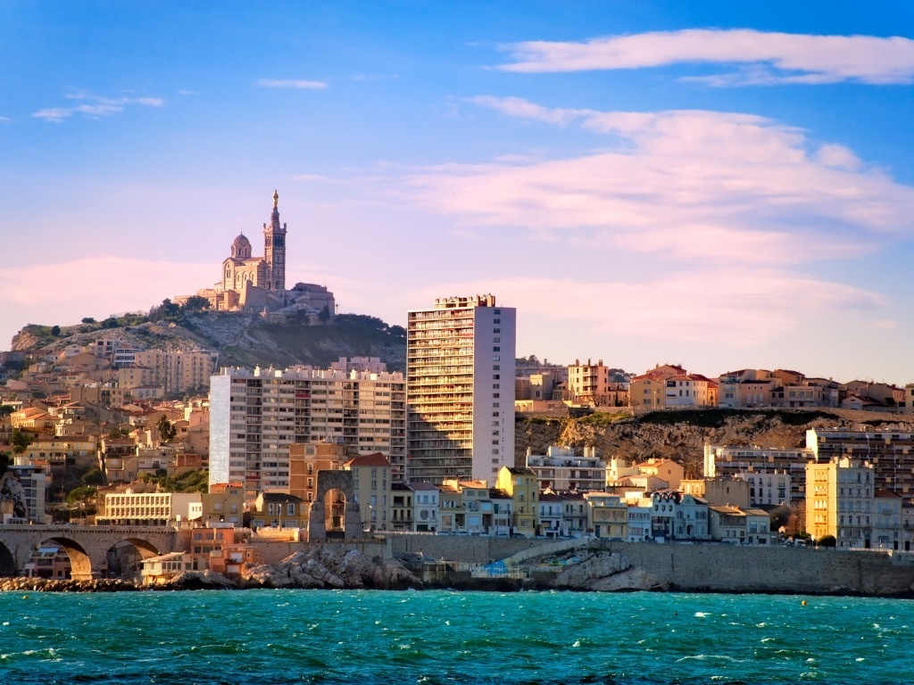 Марсель еще на этапе подготовки к путешествию удивил обилием недорогого и хорошего жилья. Заблаговременно забронированная гостиница почти в центре города (отличный двухкомнатный номер с большим балконом, раздельным санузлом и кухней), да еще и с завтраком, обошлась в сумму чуть более 6000 рублей в сутки для нашей компании, состоящей из пяти человек (около 1200 рублей с человека). С балкона открывался вид на Нотр-Дам-де-ла-Гард. Эта великолепная базилика, расположенная на вершине холма в центре города, все четыре дня была для нас маяком и ориентировочным объектом.