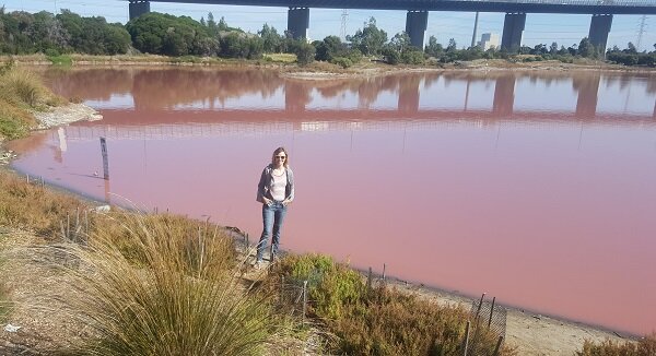 В этом году мельбурнская осень радует горожан и гостей города удивительно теплой погодой. Я бы даже сказала жаркой. К примеру,позавчера было 29 градусов тепла, завтра обещают 30. Сегодня же всего плюс 23 и погода настолько изумительная, что я решила проехать проведать Солёное озеро, что находится в одном из мельбурнских парков под названием Западные ворота. Потому как распространились слухи, что из-за установившейся сухой погоды и отсуствию дождей Солёное озеро снова стало ярко розовым. Забегая вперед, скажу, что слухи себя полностью оправдали. А фотки с озера оказались нисколько не фотошопными, а абсолютно реальными. Как и мои (ни капли какой-либо обработки, снято на телефон) Вода в озере экстримально солёная (о чем говорит даже его название) и в ней выживают только очень стойкие водоросли. К ним относятся такие водоросли как Дуналиелла солоноводная (Dunaliella salina), которая является одним из видов Галофилов (halophile) -зелёных микроводорослей, живущих в особенно солёной