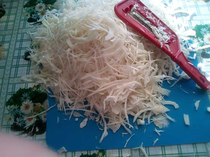 уже нашинкованной капусты. Шинковать можно чем угодно, если нет специального инструмента, можно пользоваться обычным ножом. Раньше я так и делал, пока не приобрел такую шинковку. Пользоваться ей очень удобно и что самое главное, быстро все получается.