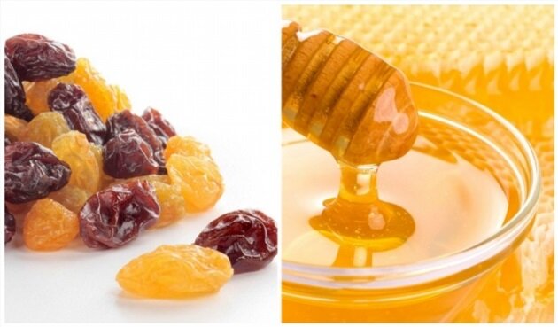 1. Возьмем по килограмму меда и изюма без косточек. Естественно, мёд должен быть натуральный.