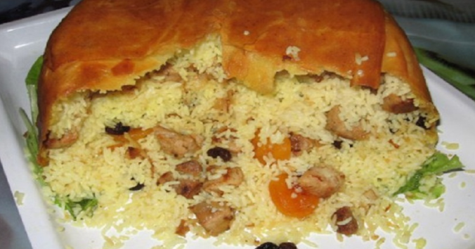 Это блюдо имеет азербайджанский корни, а получил он такое название по причине того, что блюдо богатое, красивое, очень вкусное, достойное самых почетных гостей, правителей и шахов. Благодаря красивой подаче блюдо популярное во всем мире! Ингредиенты 2 лаваша 1 кг риса 1 кг говядины 3 моркови 3 луковицы 2 головки чеснока 200 гр. кураги 100 гр. изюма 100 гр. сливочного масла По щепотке куркумы, сушеного барбариса, красного жгучего перца и черного молотого Соль по вкусу Приготовление Рис отвариваем в подсоленной воде до полуготовности. Воду сливаем, рис промываем и откидываем на дуршлаг. Мясо нарезаем кубиками, обжариваем на растительном масле до золотистого цвета, добавляем мелко нарезанный лук и морковь соломкой. Обжариваем до прозрачности лука, затем добавляем стакан воды и тушим до полуготовности и смешиваем с рисом. Курагу и изюм заливаем кипятком и оставляем на пять минут, затем воду сливаем и добавляем к рису и мясу. Лаваш нарезаем полосками, укладываем в форму для запекания