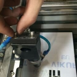 Вам будет отлично виден красный луч самодельного лазера. После выключения питания лазерного гравера, вы сможете перемещать каретку режуще-гравировального узла руками.