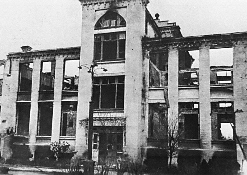 В период существования советской власти наш город украсили красивые трех- и четырехэтажные здания средних школ. В одиннадцати школах Нальчика обучалось 6.800 детей, в них работало 295 учителей. Школы имели ценное оборудование: физические, химико-биологические, историко-географические кабинеты, хорошо подобранные библиотеки. Нагло провозгласив на весь мир себя установителями „нового порядка" в Европе, „носителями культуры и просвещения", немцы с первых же часов своего прихода начали свою деятельность. Выломав в здании школы № 1 стены первого этажа, они устроили гараж, а остальную часть здания, как и все здания других школ, заняли под казармы. В несколько часов было уничтожено все школьное оборудование. Из окон школы № 6 на тротуар полетели изорванные книги, альбомы, таблицы, физические приборы, макеты. Богатейшие кабинеты школ № 1 и № 5 были разбиты и выброшены в мусорную яму. В окнах школьных зданий задымили трубы „буржуек", а стены покрылись копотью. На топку шли книги, школьная м