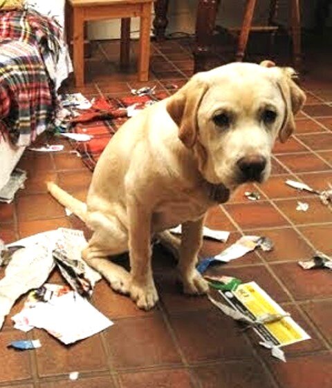 Что делать, если ваша собака, оставшись одна, к вашему приходу сооружает такой натюрморт?