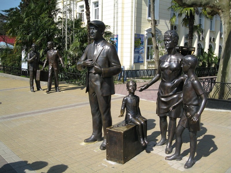 В разных городах страны можно найти памятники, посвященные популярным советским фильмам. Вот несколько ярких примеров. "Бриллиантовая рука" - памятник в Сочи Памятник вылит в бронзе и установлен возле Морского вокзала. Сочи был выбран не случайно, ведь многие сцены легендарной комедии снимались на улицах этого города. "Джентльмены удачи" - памятник Доценту в Москве В 2015 году этот памятник был распилен на металлолом, но милиционерам удалось вычислить злоумышленников. Сумма ущерба оценивалась в 160 тыс. рублей. Бронзовая копия Доцента была установлена напротив "Мосфильма". Кстати, вот такой, достаточно страшный памятник в честь фильма установлен в Ереване напротив одноименного ресторана. Ниже фото еще одного монумента в Казахстане. "Афоня" - памятник в Ярославле Монумент в честь популярной советской комедии о сантехнике Афоне. Этот памятник установлен в Екатеринбурге, и часто называется просто монументом в честь сантехников без отсылки к фильму. "Кавказская пленница" - памятник в Ирку