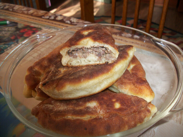 Тесто: творог- 400гр (2пачки) сметана - 2 стл ложки с горкой яйца - 2шт сода - 1чл ложка без горки мука 13 стл ложка с горкой или 2 стакана. Рецепт : По муке смотрите по составляющим у меня творог суховатый 9%, сметана густая, яйца крупные. Так что смотрите тесто по замесу. В рецепте который мне дали нет в тесте ни соли,ни сахара, но я добавляю 1 чл соли , 1 стл сахара, а вы по желанию можете добавить - а можете не добавлять и так и так вкусно. Соду не гасим размешиваем со сметаной и творогом смесь начинает потихоньку пыхтеть. Затем добавляем муку и замешиваем пластичное мягкое тесто. Сначала в чашке а затем и на столе. Замесили раскатываем в колбаску. Затем отрезаем небольшие кусочки и раскатываем лепешки на серединку каждой лепешки кладем фарш любой какой вам нравится По всякому вкусно!! у меня пироги с ливером (печенка,сердце,легкое) Фото смесь пыхтит. Такой колобочек теста на 17 штук. Если хорошо нажмете пальцем тесто будет по структуре рыхлится. Нарезали на кругляшки и раск