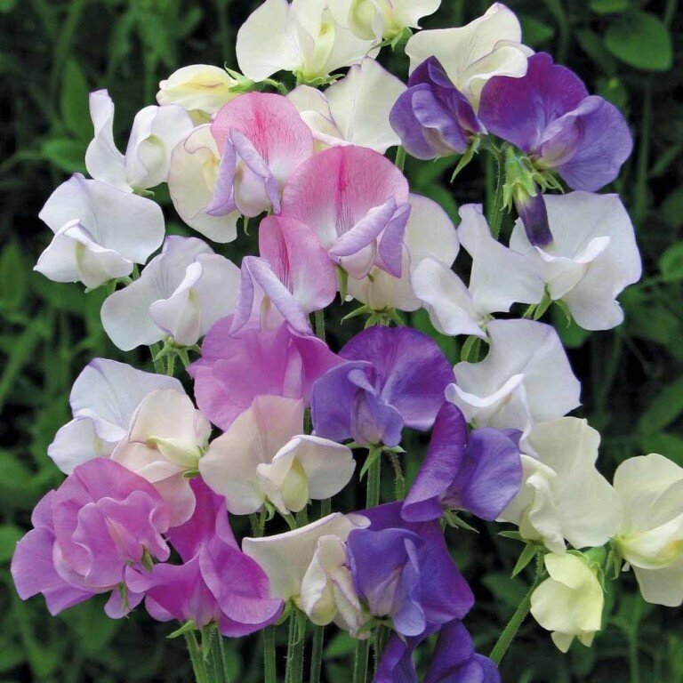 Душистый горошек, он же чина душистая-удивительно изящное и красивое вьющееся растение. Им восхищаются уже триста лет, было выведено 1000 сортов. В Англии, например, он настолько популярен, что даже было создано Королевское общество любителей душистого горошка. Растение представляет собой однолетнюю лиану от 25 до 220 см высотой. Как и овощной, декоративный горошек взбирается вверх, цепляясь усиками за опоры. В зависимости от сорта цветение чины душистой наступает через 60-90 дней после появления всходов. Окраска цветков душистого горошка включает оттенки бордового, красного, розового, синего цветов. Растение влаго и светолюбиво, весьма холодостойко, всходы выдерживают заморозки до -5°С. Предпочитает глубоко обработанные нейтральные или слабощелочные лёгкие, богатые гумусом почвы. Семена сохраняют всхожесть до 5 лет, их можно высевать сразу в грунт на постоянное место. Выращенный из рассады, душистый горошек зацветёт раньше. К посеву приступают в конце марта-начале апреля. Сначала