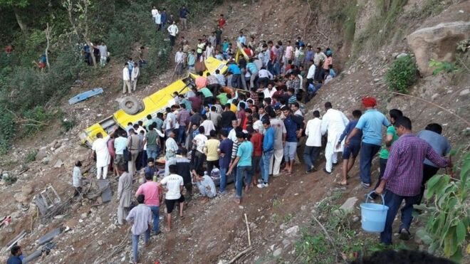 По словам чиновников, по меньшей мере 30 человек, большинство из которых дети, умерли после того, как школьный автобус упал в ущелье в горном районе Индии. Большинство пассажиров были моложе 10 лет, сообщили в полиции. Водитель автобуса и два учителя погибли в ДТП в понедельник вечером. Инцидент произошел в Северном штате Химачал-Прадеш. Дорожно-транспортные происшествия распространены в Индии, часто из-за плохого вождения или плохо обслуживаемых дорог и транспортных средств. Авария в понедельник, которая произошла около 325 км (200 миль) от столицы штата, Шимла, включала в себя автобус, перевозивший около 40 студентов из школы памяти Вазира Рама Сингха Патания в Нюрпуре в районе Кангра в стране "Автобус свернул в ущелье глубиной в 200 футов (61 м), убив 27 школьников, двух учителей и водителя", - сказал агентству AFP сотрудник местной полиции Сантош Патьял. Очевидцы сказали, что автомобиль занесло, как он повернул за угол и покинул горную дорогу, сообщает Индийское агентство ANI. На