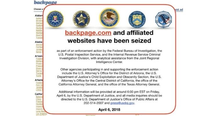 Власти США взяли под свой контроль сайт классифицированных объявлений, обвиняемый в участии в сексуальной торговле. Сайт ранее закрыл раздел для взрослых на своем американском сайте, но критики утверждали, что объявления о проституции просто переместились на другие страницы По данным агентства Рейтер, в британском издании было продано десятки объявлений секс-услуг на момент его закрытия. Исследование, проведенное благотворительным фондом агентства новостей, показало, что до одного из 20 соответствующих постов по Backpage.co.в Великобритании могли быть жертвы рабства. Одна благотворительная организация сказала, что этот шаг лишь частично затронул проблему. «Хотя усилия по закрытию таких веб-сайтов, как Backpage, приветствуются, они представляют собой небольшую часть более широкой и сложной системы сексуальной эксплуатации, действующей в Великобритании и за ее пределами», - сказала Би-би-си Джодизине Ноулз, содиректор « Beyond the Streets». Американские СМИ также сообщили, что соучредит