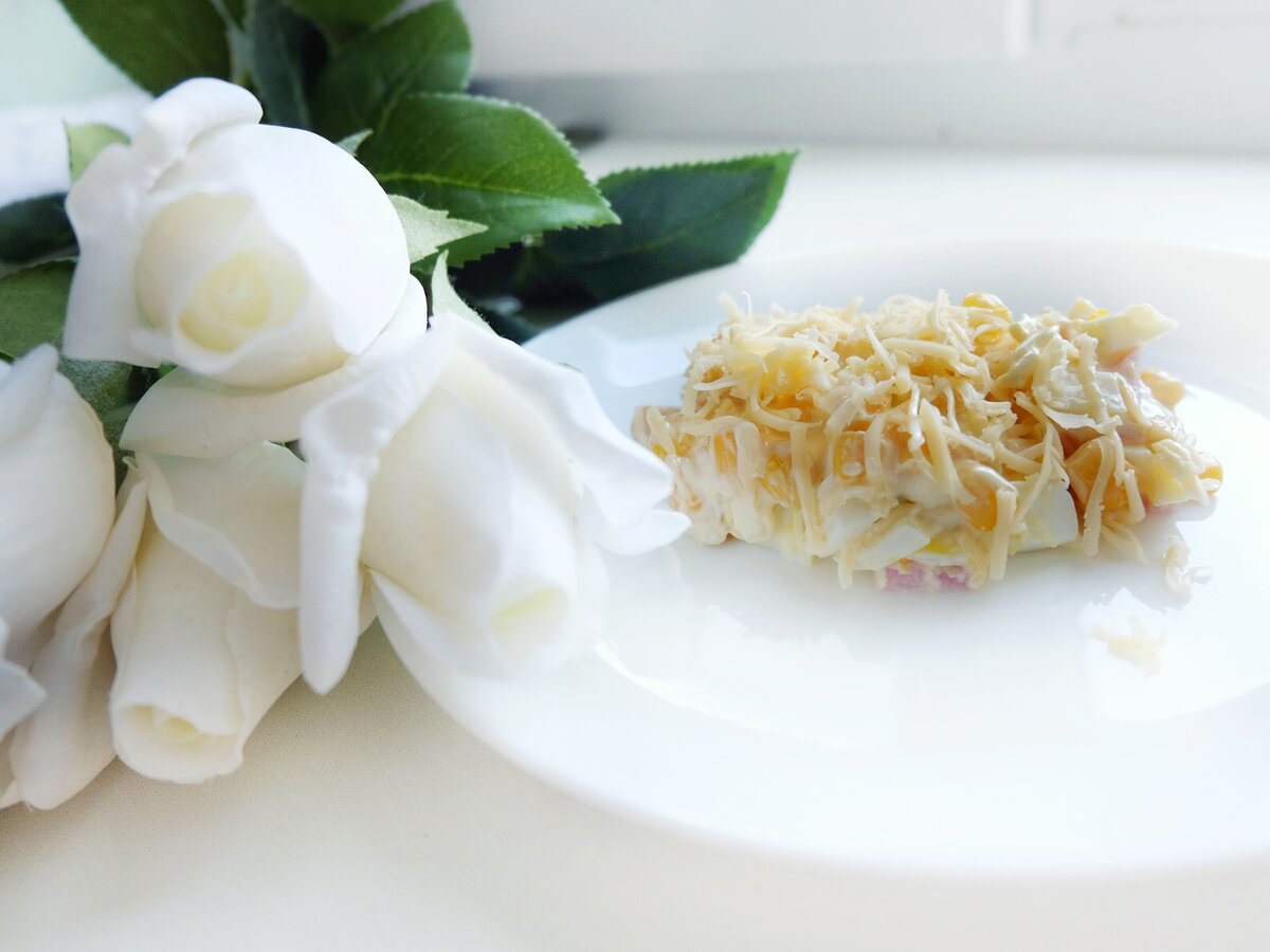 Однажды мне захотелось салатика и я его сделала из того, что у меня было в холодильники. А получилась нереальная вкуснота. Вот так иногда спонтанно рождаются самые вкусные рецепты. Хочу поделится с вами, уверяю вас вы поставите этот салатик в список любимых! Вкус настолько нежный , свежий и одновременно пикантный из за чеснока, что никого не оставит равнодушным! А у вас рождаются такие рецепты? Если да, то ставьте класс рецептику и подписывайтесь на канал, ваша поддержка очень важна для нас! Салатик делаем слоями. Для промазывания каждого слоя используйте майонез смешанный с чесноком через пресс. Итак слои такие : ветчина на крупной терке яйца вареные мелко покрошенные кукуруза сыр на мелкой терке