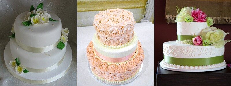 Хорошо зарекомендовали себя торты-суфле, бисквиты, йогуртовые, творожные и марципановые вкусности. По возможности закажите мини-тортик (до килограмма) на пробу заранее, чтобы потом не разочароваться. Кстати, многие кондитерские изготавливают пирожные для дегустации в точности по рецепту свадебного торта, пробовать их – одно удовольствие (если, конечно, не боитесь лишних килограммов).