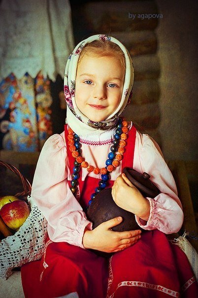 Девочка приятной внешности – рослая, стройная, прелестное лицо с лёгким румянцем (в большом городе нечасто увидишь румяного ребёнка!). Отличница, занимается в коллективе народного танца и в рисовальном кружке при школе. Это уже противоречит словам, будто её загрузили домашней работой, как Золушку. И одета, как все девочки, в форму школы: клетчатая юбка в складку, блузка и жилет или жакет.