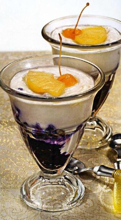 Легкий десерт для Новогоднего стола 2012. Вы потратите всего 10 минут для приготовления этого изумительного десерта. Состав: Консервированные ананасы 100 гр, Сливки жирностью 35% 150 гр, Сахар или сахарная пудра 2-3 ст. ложки, Черника замороженная 100 гр. Приготовление: Сок слить, ананасы взбить в блендере вместе со сливками и сахаром. На дно бокала положить ягоды черники, сверху взбитые сливки, украсить дольками ананаса. Сверху можно посыпать тертым шоколадом. Приятного аппетита. Интернет магазин предлагает огромный выбор часов по невысоким ценам, обращайтесь. По материалам журнала "Школа гастронома".