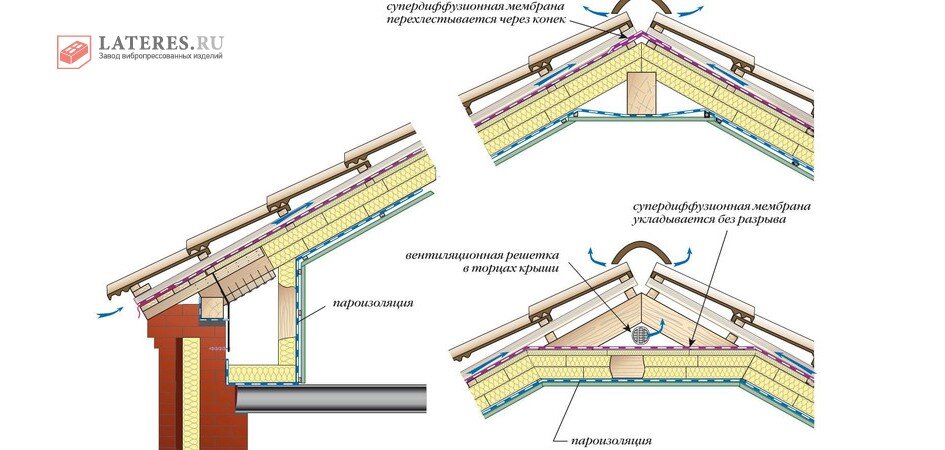 Иногда возникает необходимость в дополнительном утеплении крыши. Это может происходить, когда уже установлена новая кровля, но ее утепления недостаточно либо крыша уже довольно старая и начала пропускать холод. Но все-таки специалисты рекомендуют быть предельно осторожным при совершении данного мероприятия, так как крыша сама по себе – сложная конструкция, утепление которой может никак не подействовать на температуру в доме. Важно не допустить намокания термоизолирующих материалов. При воздействии влаги они теряют все свои свойства. Влага же может проникать как с улицы, так и изнутри дома. Согласно технологии, паропроницаемость слоев гидро- и теплоизоляции должна возрастать по направлению изнутри наружу. То есть, влага должна благополучно покидать дом, происходит это посредством «передачи» влаги от одного стройматериала к другому, пока пар полностью не покинет пределы дома. Но все же при необходимости возможно правильно и эффективно утеплить крышу изнутри. Какие материалы используют д
