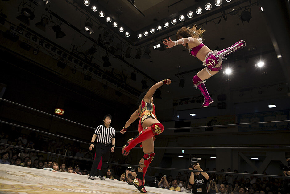 Японские девушки — милые и застенчивые создания. Но лишь до тех пор, пока не оказываются на ринге. Добро пожаловать на обратную сторону Страны восходящего солнца — мир боли, пота, вычурных нарядов и устрашающих масок. Все это — женский профессиональный рестлинг, где Инь и Ян, похоже, смешались в одно целое. Профессиональный женский рестлинг в Японии — это яркие костюмы, улетные прыжки и стойкий запах пота. Брутальную реальность ринга маскирует элемент фантасмагории, и шоу пользуется бешеной популярностью — в основном среди мужчин. Полтора века назад это единоборство было неотъемлемой частью японских карнавалов. В самостоятельное шоу рестлинг превратился в XX веке, причем женские бои зачастую вызывают даже больший интерес, чем мужские. По словам фанатов со стажем, современный женский рестлинг — жалкое подобие той мясорубки, которая царила на ринге в 90-х годах прошлого века. Поговаривают, что качество шоу сильно пострадало после того, как промоутеры решили обратить свой взгляд в