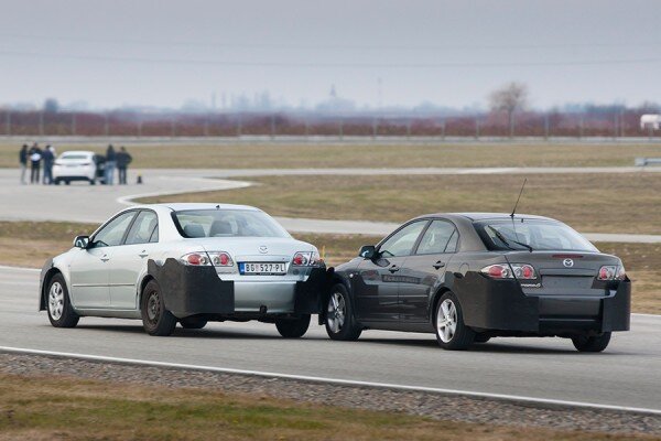 Есть на полигоне и внедорожный участок, на котором автомобильные компании проводят тест-драйвы кроссоверов, но мы приехали за другим – попробовать себя в роли телохранителей особо важных персон. Автомобили для тренировки привезла из Москвы компания Mazda.